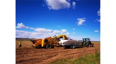 金秋九月,薯香滿地。內蒙古民豐薯業有限公司馬鈴薯秋收工作于10日在16個種植農場全面啟動。22臺大型聯合收獲...